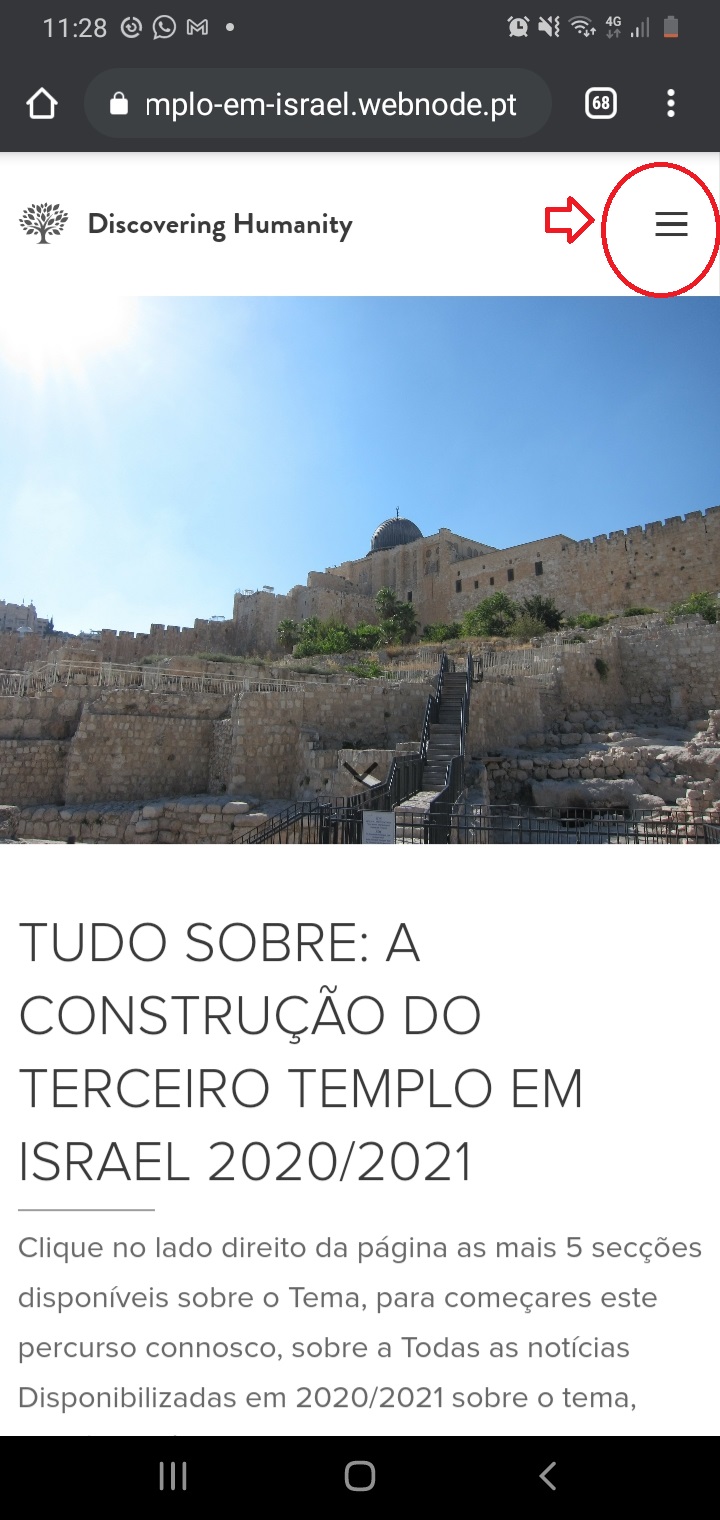 Se tiver no telemóvel, o Menu com as 5 secções não está no lado direito. Nesse caso, encontra-se em cima. como indicado na imagem.